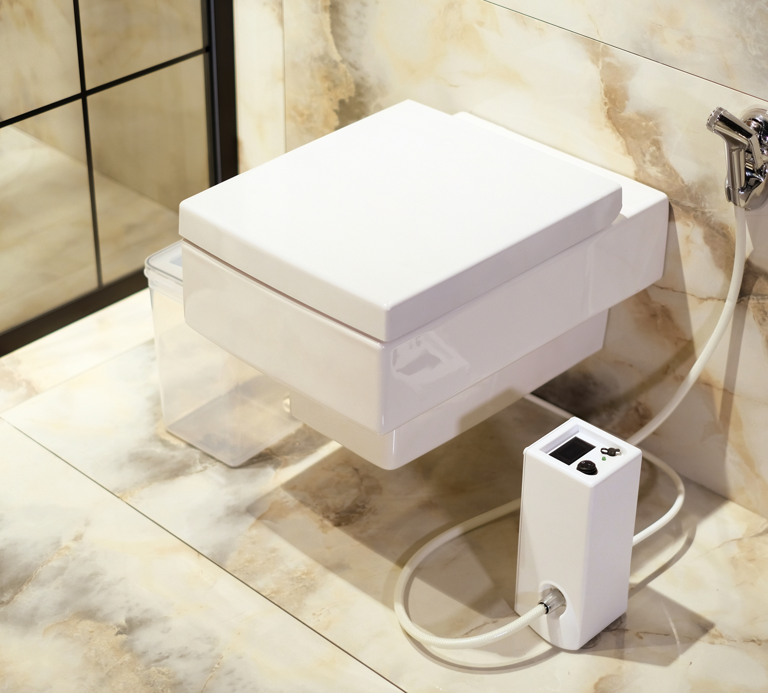 Transform your bathroom in less than 3 minutes. No water connection or electrical connection required. Connect the bidet unit to the water tank and it's ready to use.